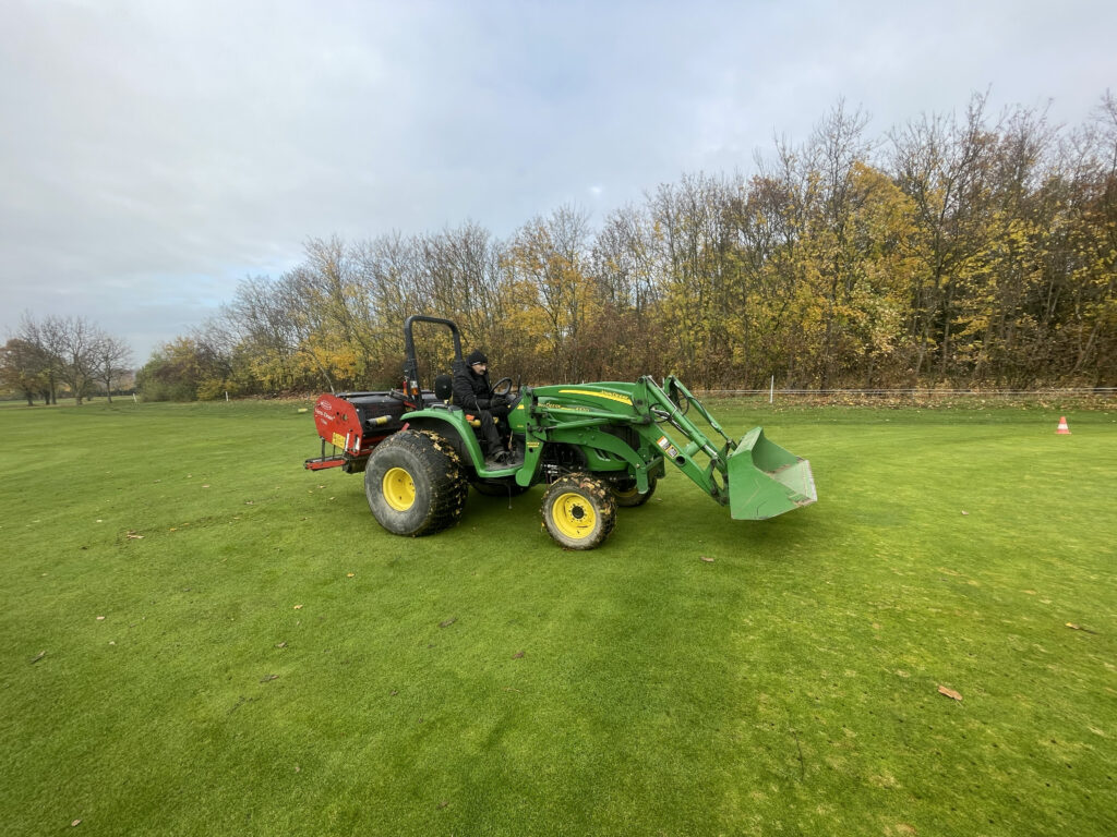 Im November 2025 wurden die Grüns mit 25 cm tiefen Vollspoons aerifiziert, um maximale Belüftung und eine optimale Bodenstruktur zu gewährleisten. Die offenen Löcher bleiben über den Winter bestehen, damit der Boden „atmen“ kann und sich nachhaltig für die kommende Saison regeneriert. Daher wird bis Anfang der Hauptsaison 2026 auf Wintergrüns gespielt.